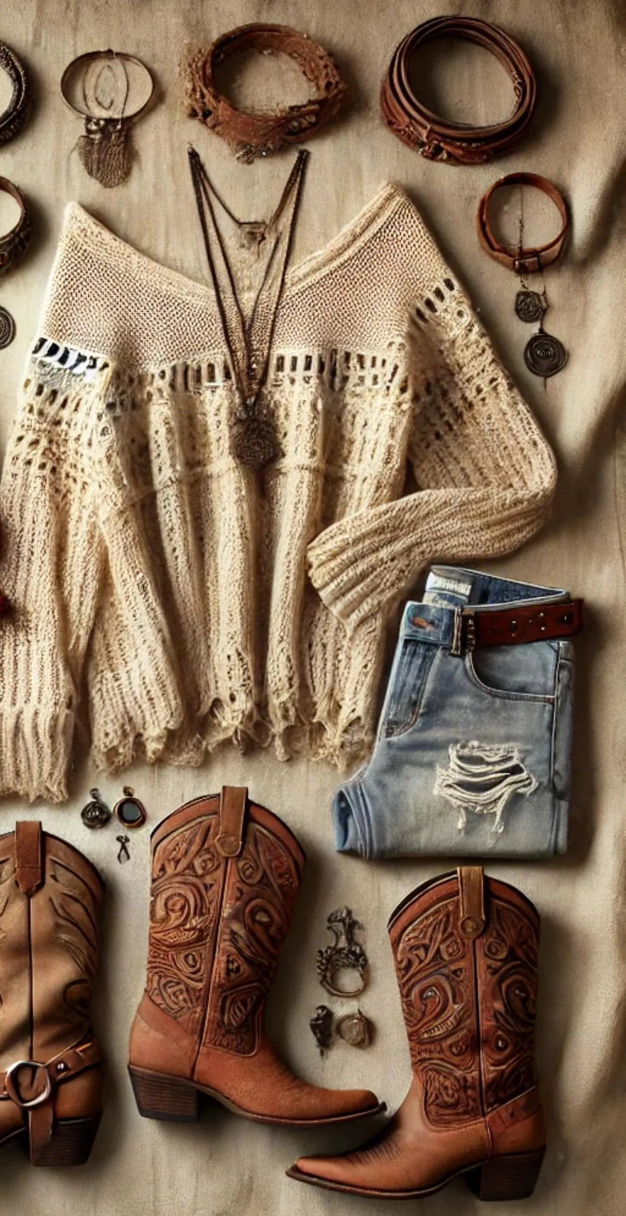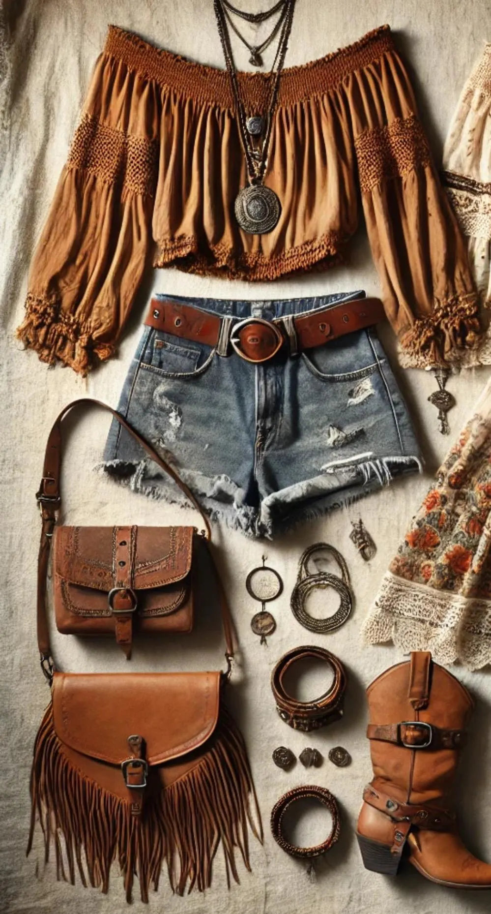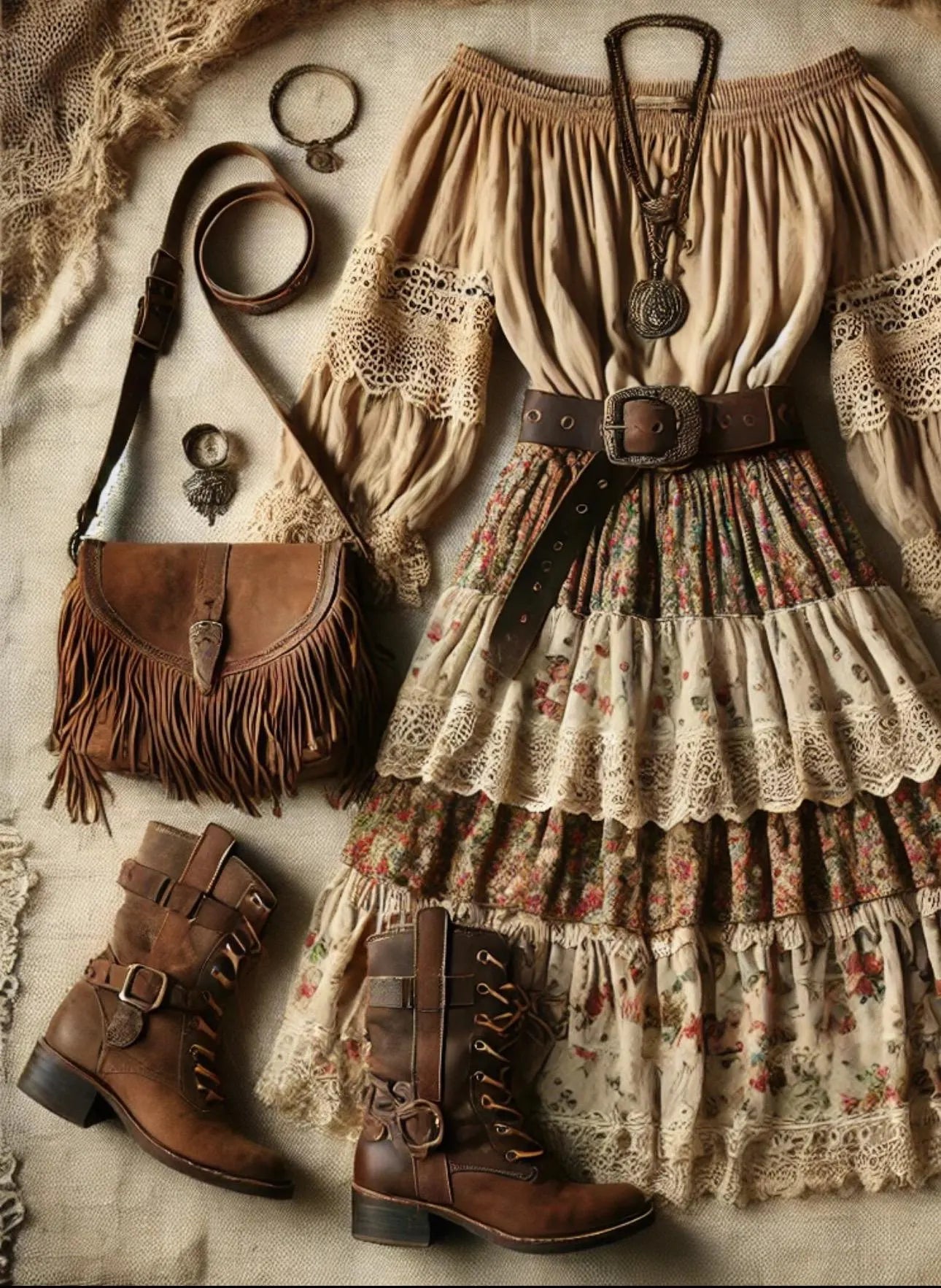 • 🌾 Accessories to complement your look (woven bags, leather belts, handcrafted jewelry, or boho hats)